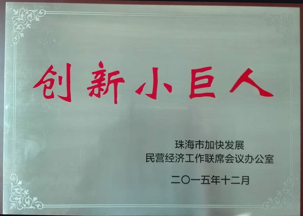 2016年7月29日,珠海市隆重召開了“珠海市民營經(jīng)濟工作會議”,我公司作為珠海市重點民營企業(yè),派代表參加了會議。會上對獲得“創(chuàng)新小巨人”稱號的企業(yè)進行了授牌儀式,我司被評為“創(chuàng)新小巨人”,上臺接受了由市委、市政府領導頒發(fā)的獎牌。